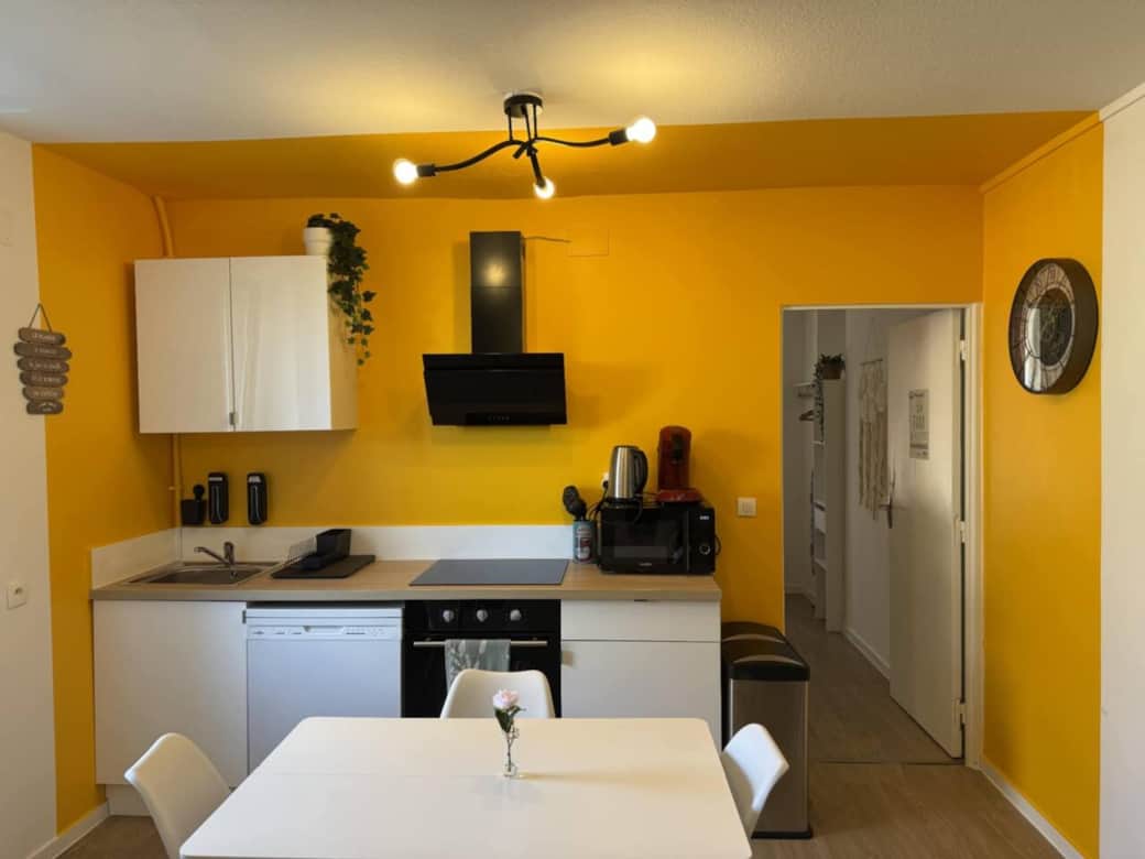 Mixer, Kinderhochstuhl, Kaffeemaschine, Küchenutensilien, Geschirrspüler, Mikrowelle, Backofen, Kühlschrank